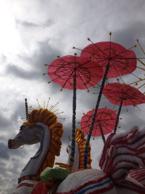 A partir de las 17:00h, más de 2.500 personas participarán en un desfile de carrozas multicolor, acompañados de grupos folclóricos y bandas de música.